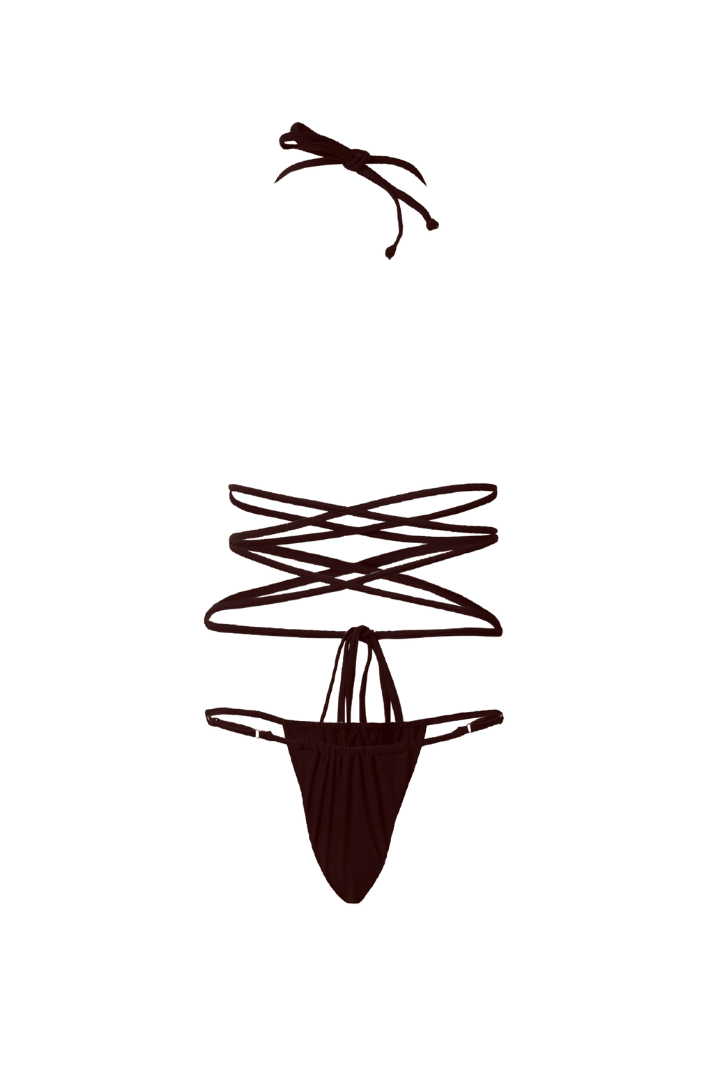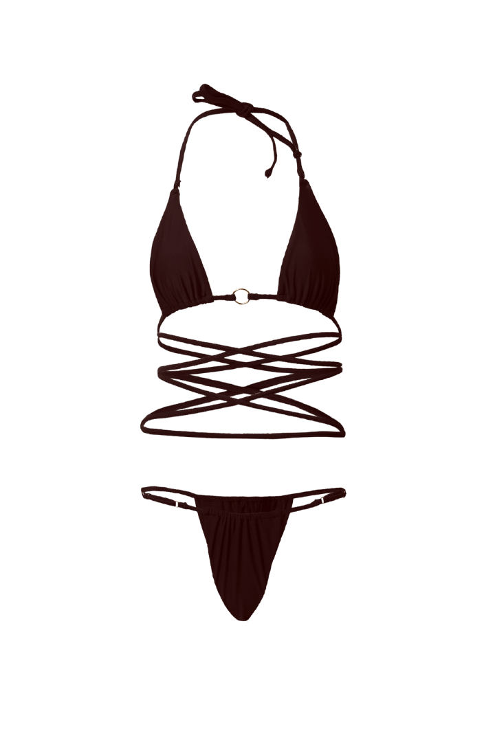 These rich brown bottoms combine elegance with functionality, featuring side ties that allow you to adjust coverage as desired. The ruched front adds a refined touch, while the sustainable nylon and spandex blend makes them ideal for both tanning and sauna sessions. With their customizable fit and flattering cut, they’re designed for comfort and style in any setting.